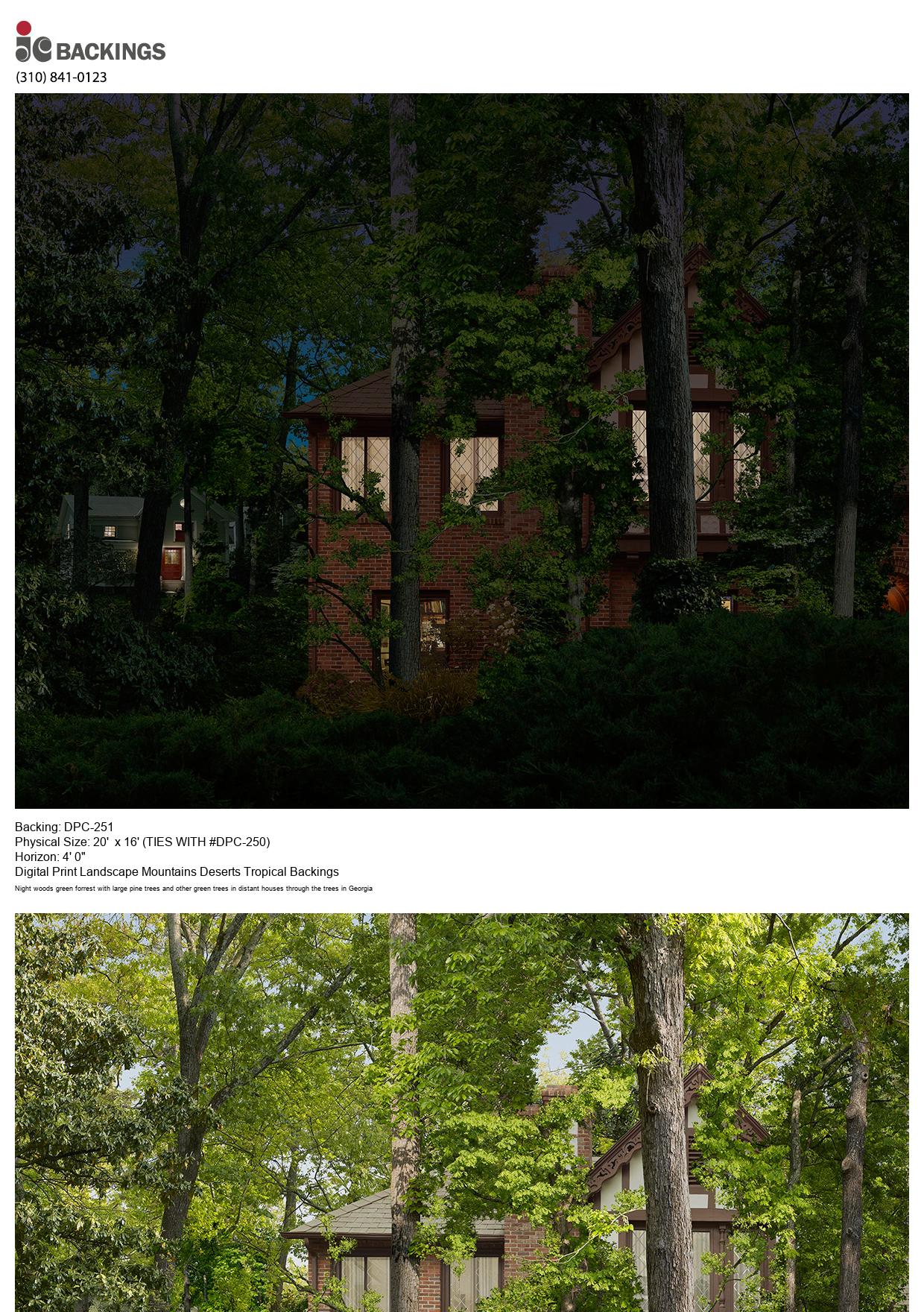 Night woods green forrest with large pine trees and other green trees in distant houses through the trees in Georgia