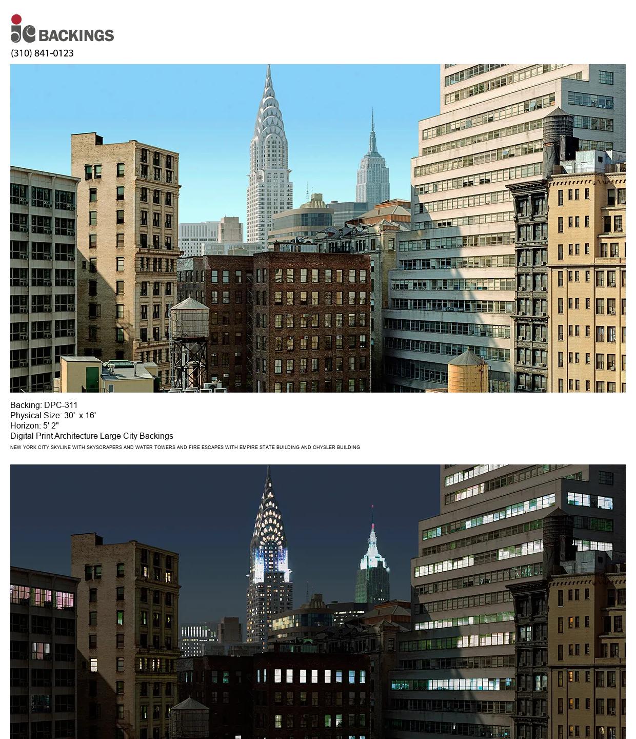 NEW YORK CITY SKYLINE WITH SKYSCRAPERS AND WATER TOWERS AND FIRE ESCAPES WITH EMPIRE STATE BUILDING AND CHYSLER BUILDING