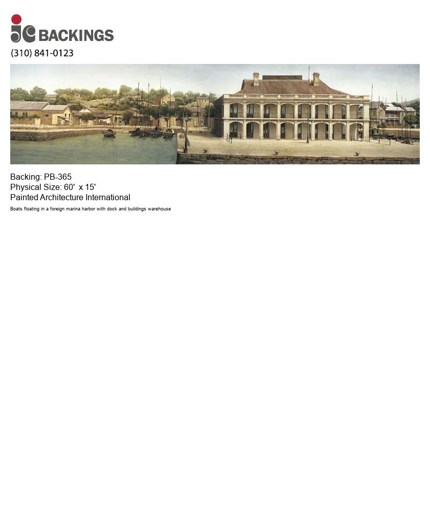 Boats floating in a foreign marina harbor with dock and buildings warehouse