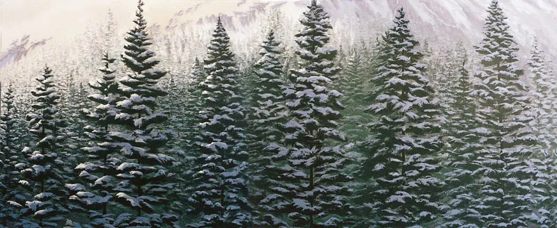 Keywords: snowy snow covered winter landscape trees tree green sunrise dusk morning mountain mountains forest forests pine pines purple orange red clear sky clouds