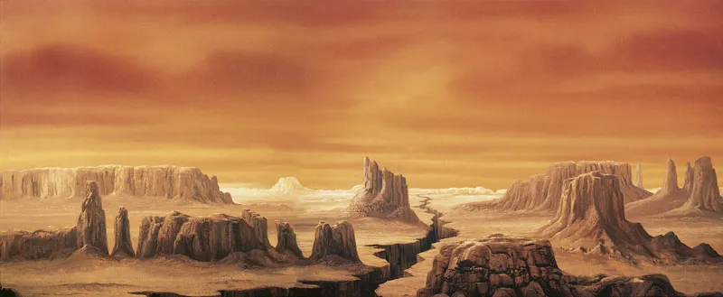 Keywords: mars martian alien aliens martians desert deserts barren red orange yellow sky dusty clouds cloudy clouded cloud dense craters crater rocks rock rocky plateau plateaus planet planets landscape