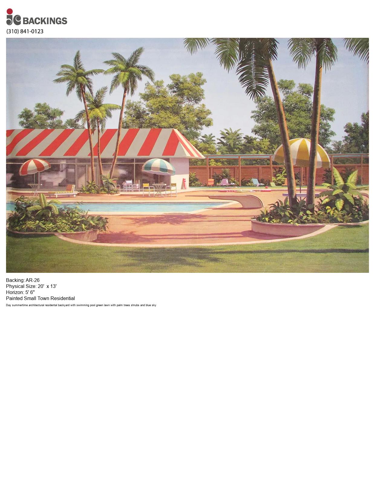 Keywords: Day daytime summer spring summertime architectural residental pool house tables chairs umbrellas backyard with swimming pool green lawn with palm trees shrubs and blue sky