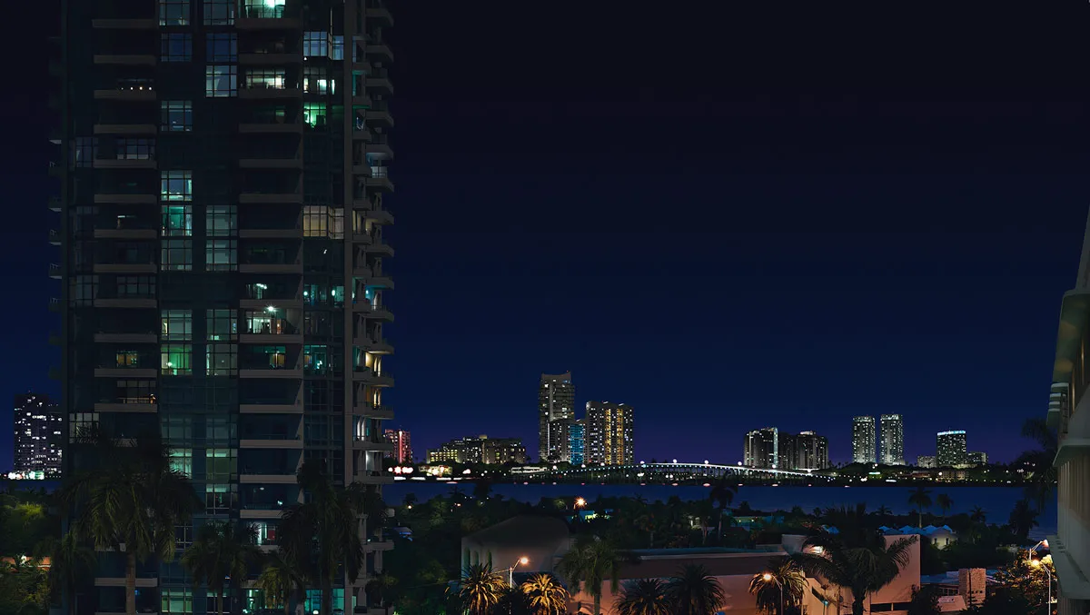 Keywords: miami florida fla usa us u.s.a. u.s. united states of america north east coast city sky line lines skyline skylines view down town downtown building buildings district business commercial large big huge architecture architectural night water canal south beach art deco bridge blue sky clouds palm trees water