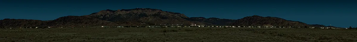 Keywords: night nighttime desert mountains blue sky town brown grass shrubs