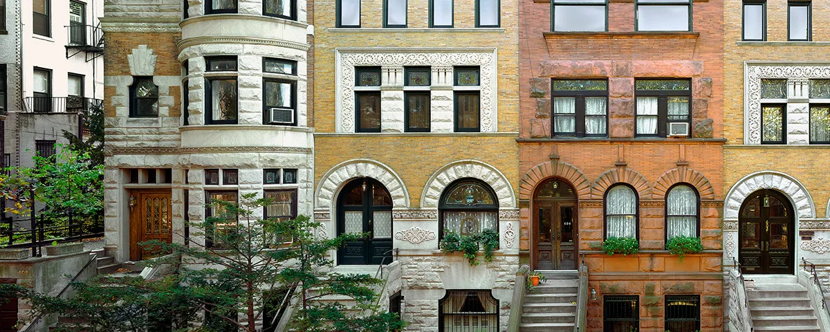 Keywords: New York N.Y. ny brownstones 602 - 605 5th fifth Str. Street between Prospect Park West eightth 8th Ave Avenue Brooklyn NY south view upper level view day time daytime