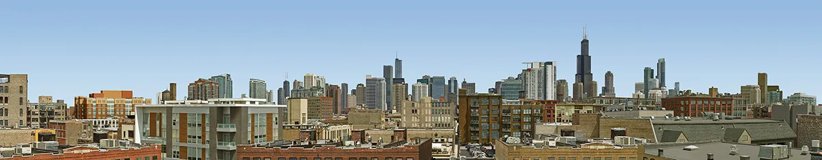 Keywords: day daytime Chicago skyline highrises office buildings blue sky