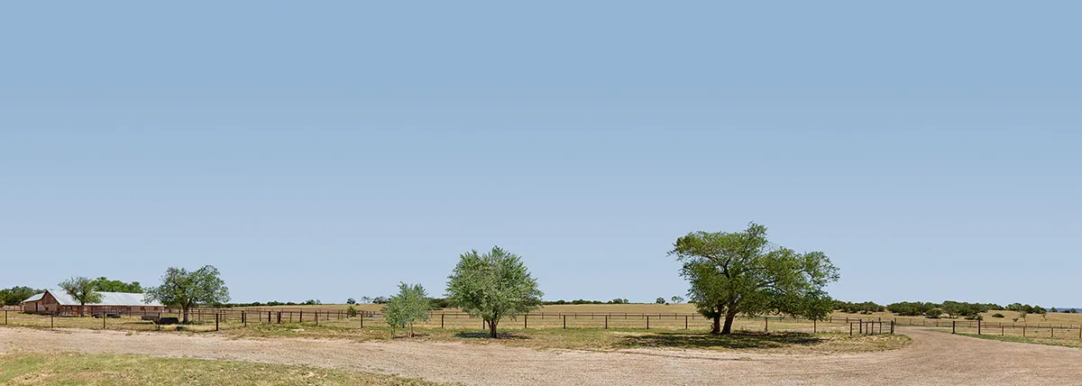 Keywords: day daytime ranch trees grass dirt blue sky green brown mountains