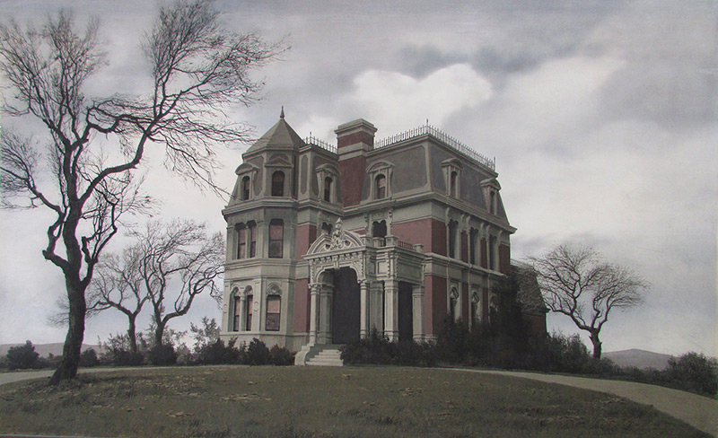 Keywords: Victorian 3 three story 18th century haunted house gray grey stormy spooky sky with white clouds bare trees