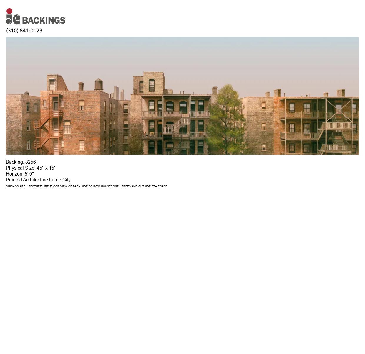Keywords: day cloudless grey gray blue sky skyline Chicago large huge big down town downtown Illinois ILL USA US U.S.A. U.S. united states of america east coast water tower towers apartments apartment building buildings fire escape escapes classic modern red brick architecture architectural green tree summer trees 4th or 5th floor view row house houses backyard view backside