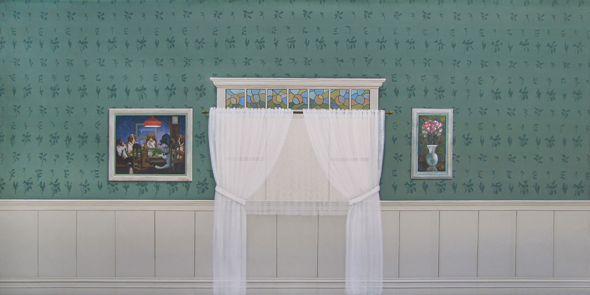 Keywords: INTERIOR HOME HOUSE WALL WALLPAPER WINDOW CURTAINS PAINTINGS NORMAN ROCKWELL THANKSGIVING
