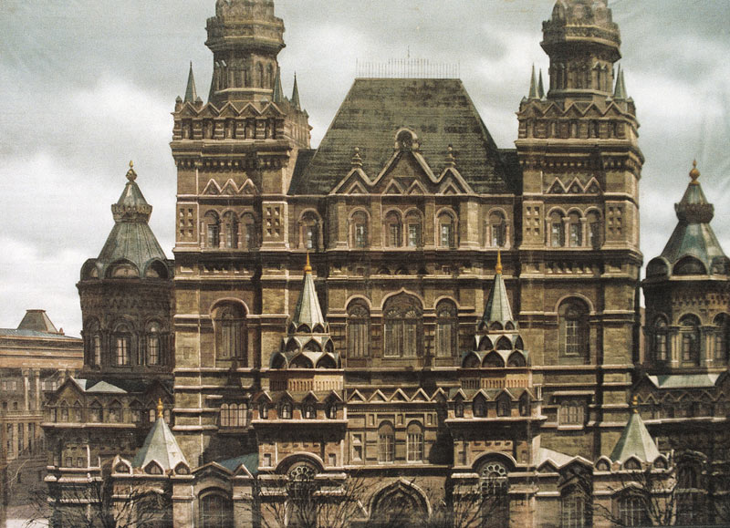 Moscow Russia kremlin with snow in the winter with grey gray sky and bare trees
