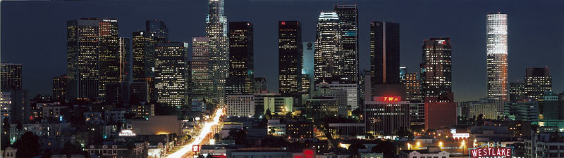 LA l.a. Los Angeles city skyline at night from an 11th floor view of downtown