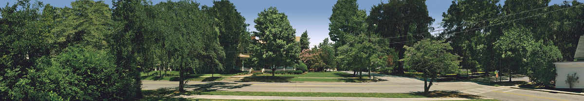 Keywords: FIRST FLOOR SUMMER TIME DAY RESIDENTIAL VIEW LOOKING ACROSS THE STREET AT HOUSES HOMES HOUSE HOME FRONT PORCH WITH GREEN TREES GRASS FLOWERS BLUE SKY IN COVINGTON GEORGIA.