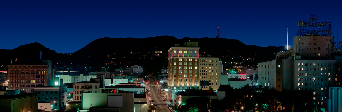 Keywords: Hollywood Hills night 7th floor view with Hollywood Sign from susnet blvd and Ivar