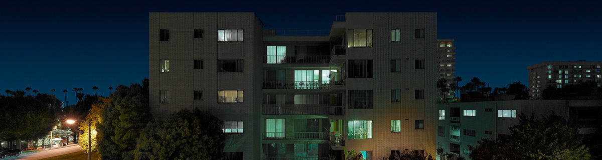 Keywords: night nighttime apartment residential trees clear sky fourth floor 4th Beverly Hills apartments cloudless palm trees