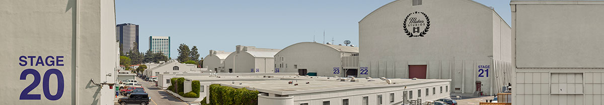 Keywords: Day daytime second 2nd floor fl view studio lot stages office buildings green trees parked cars blue sky