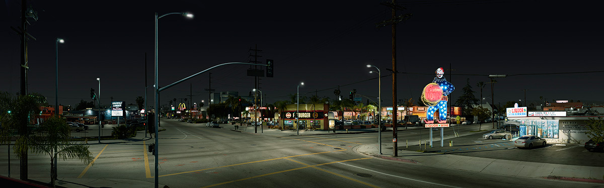 Keywords: day daytiime intersection commercial street stores blue sky lights burbank strip mall cars palm trees