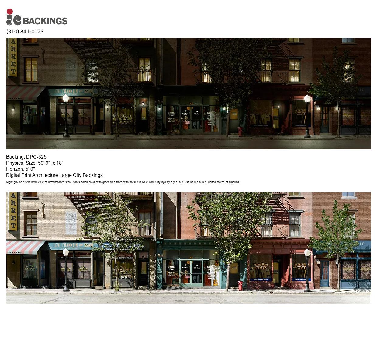 Day ground street level view of Brownstones store fronts commercial with green tree trees with no sky in New York City nyc ny n.y.c. n.y. usa us u.s.a. u.s. united states of america
