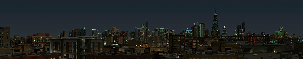 Keywords: day daytime Chicago skyline highrises office buildings blue sky