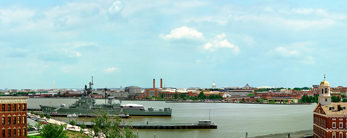 Keywords: washington d.c. district of colombia battleships ships navy yard water bay usa us u.s.a. u.s. united states of america north east coast city sky line lines skyline skylines view down town downtown building buildings district business commercial large big huge architecture architectural day