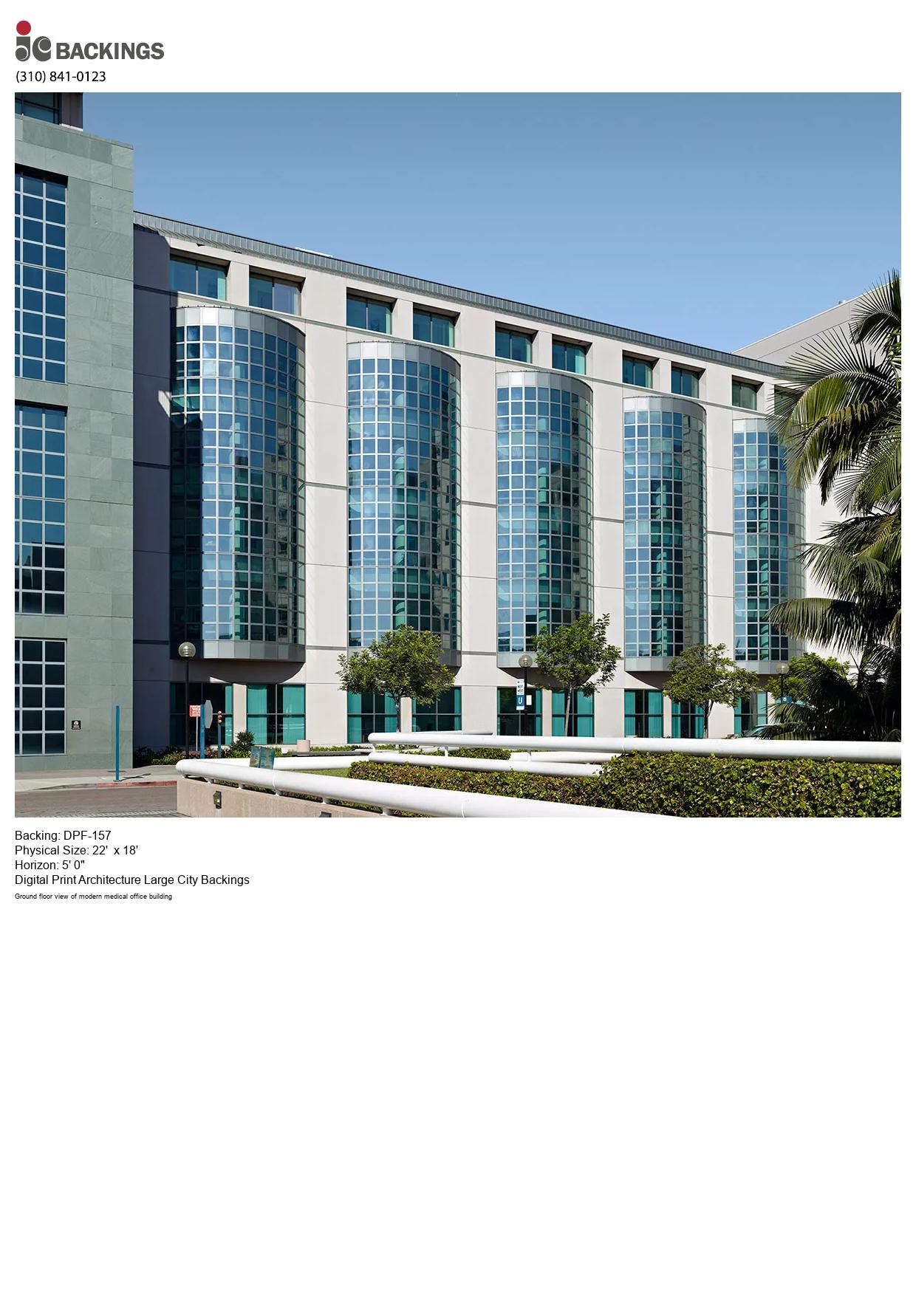 Keywords: day daytime ground floor commercial office building modern glass palm trees green blue sky