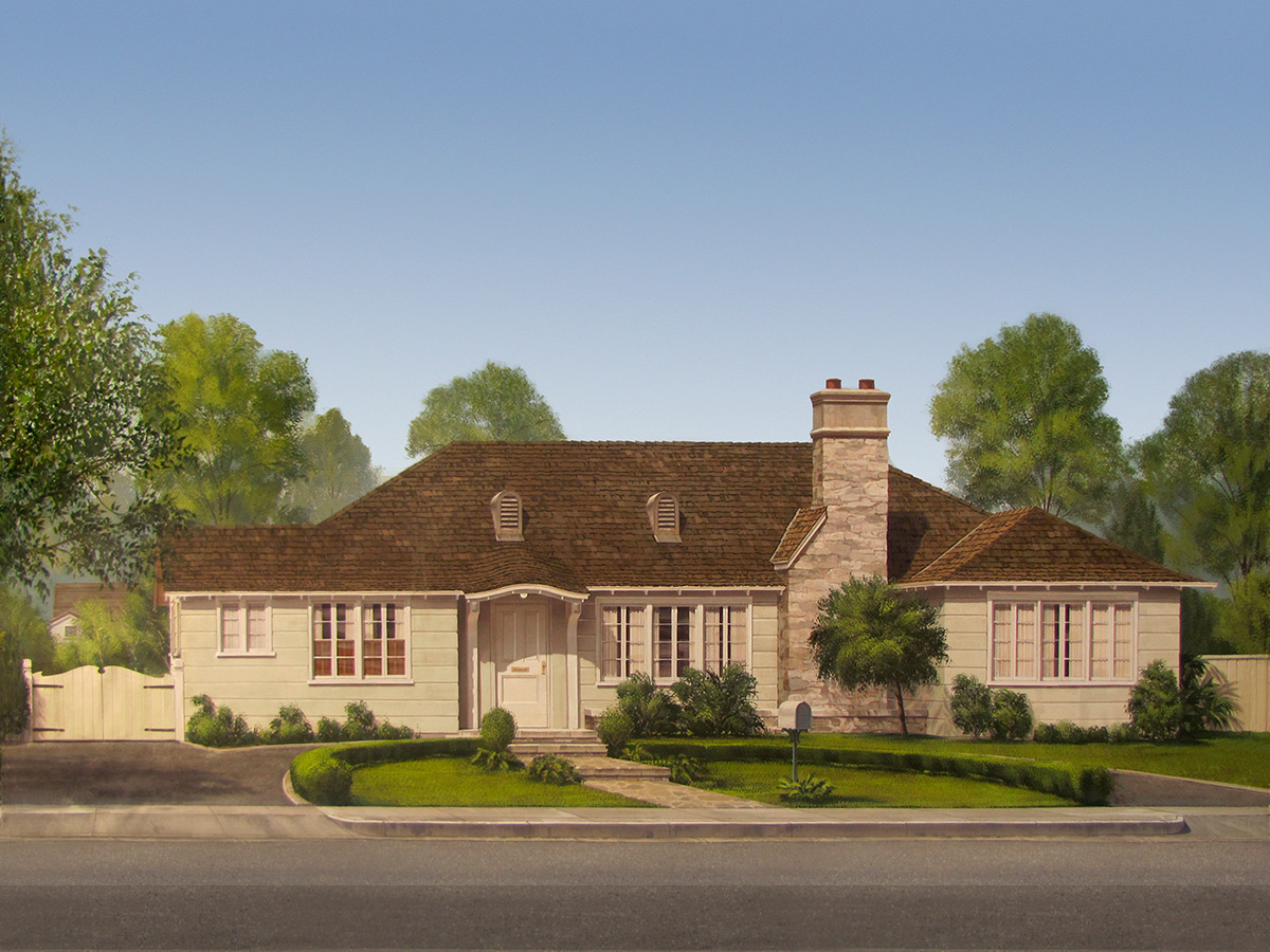 Architecture residential front yard across the street from the front porch.
