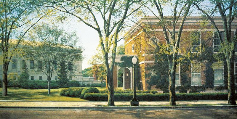 Keywords: Campus buildings city buildings spring springtime trees day daytime street level